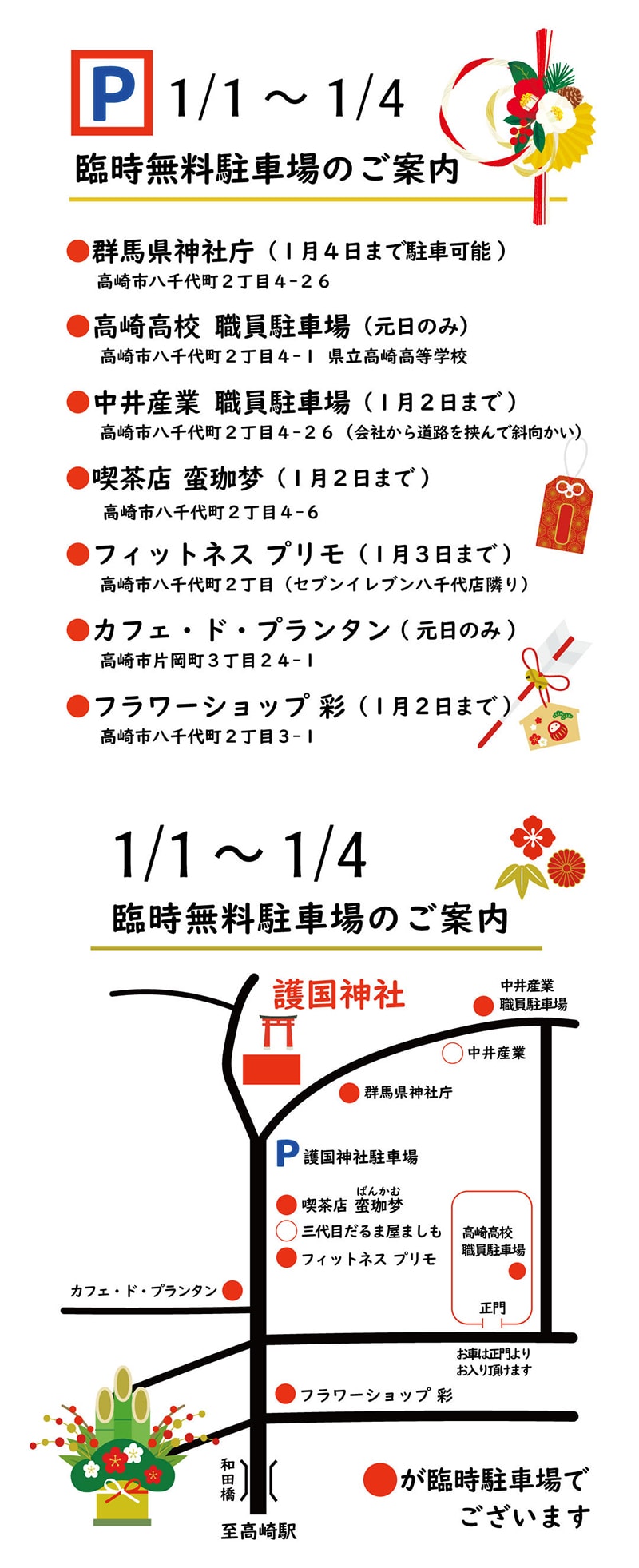 令和8年初詣の臨時無料駐車場のご案内